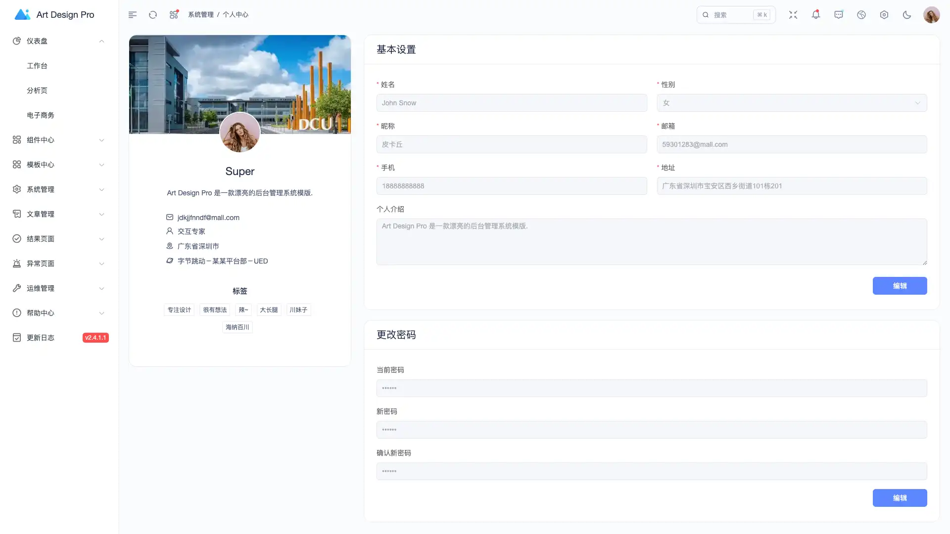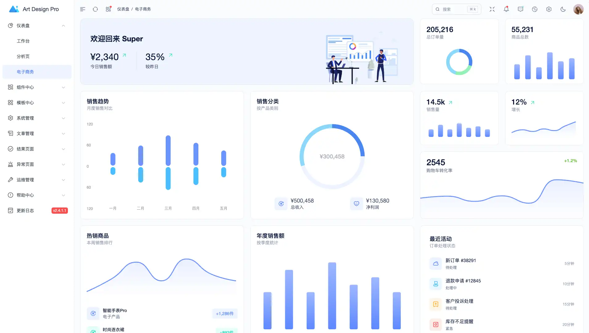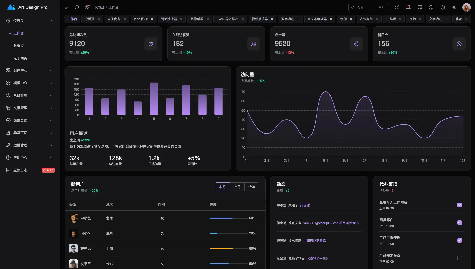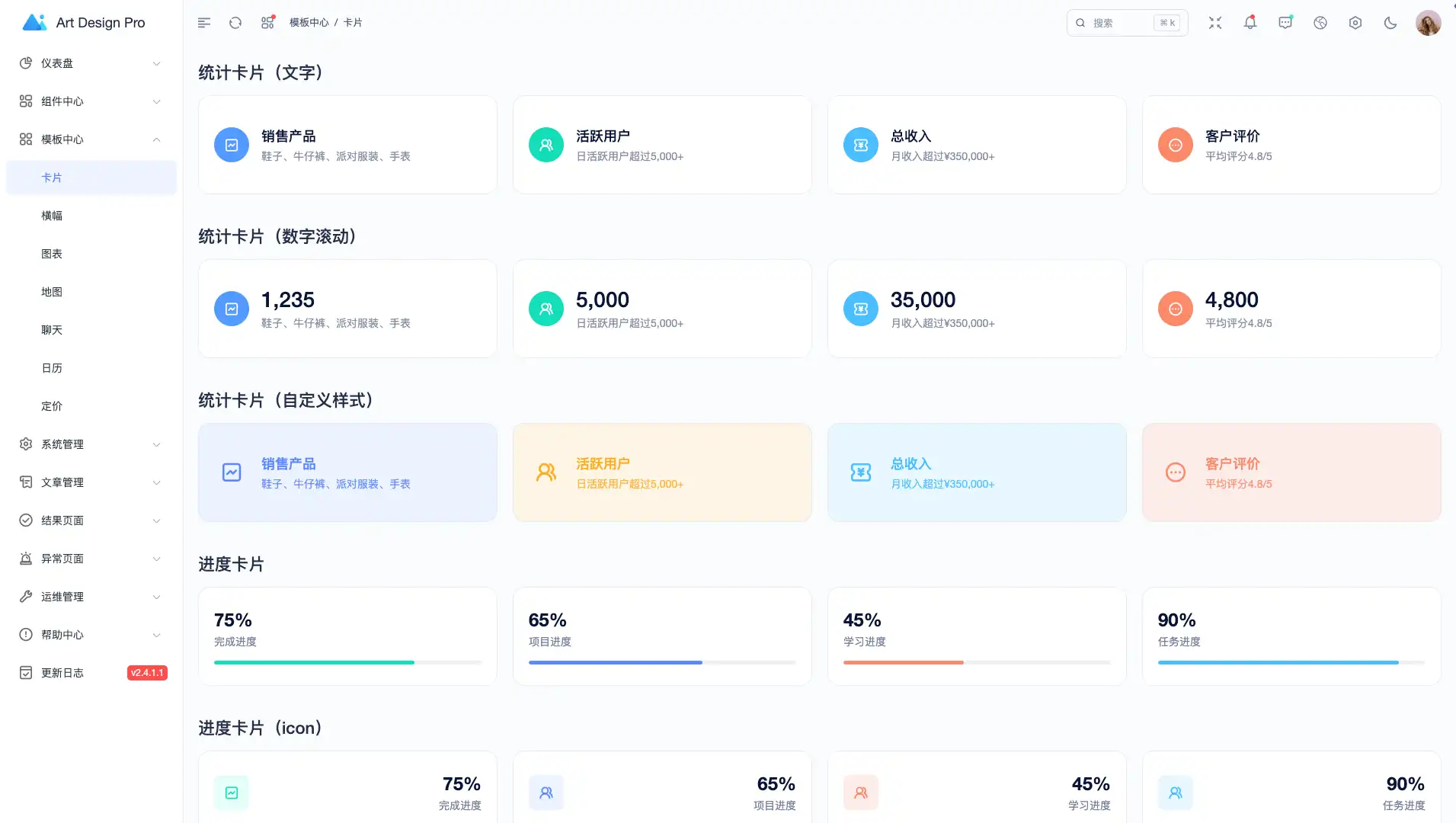 Art Design Pro is an open-source admin management solution focused on user experience and rapid development. Based on ElementPlus design specifications, it has been visually optimized to provide a more beautiful and practical frontend interface, helping you easily build high-quality admin systems.
