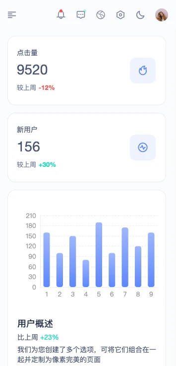 Click Me, Preview Online ->Provides a comprehensive admin management system solution, including theme customization, global search, multi-language support, data visualization, permission control, mobile adaptation, and development standard tools, meeting various needs of modern enterprise applications.